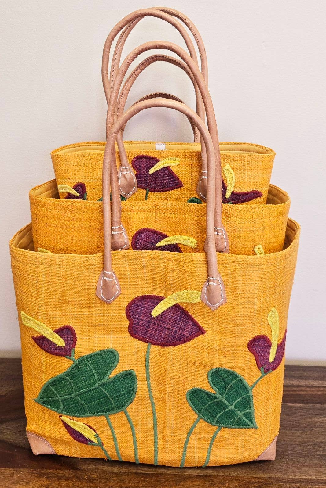 Adicione cor ousada e artesanato artesanal ao seu dia a dia com a nossa Mala de Mão de Design Abstrato de Ráfia de Comércio Justo de Madagáscar. Habilmente tecida à mão por artesãos qualificados usando ráfia natural e folhas de palmeira, cada bolsa apresenta um padrão abstrato único em cores vibrantes. O interior espaçoso inclui um fecho de cordão de tecido coordenado e um bolso costurado para fácil organização. As alças de couro castanho duráveis e os cantos reforçados em couro proporcionam resistência e estrutura duradouras. Este tote versátil é perfeito para usar como bolsa de praia, de fim de semana, para tricô ou artesanato, cesta de mercado, transportadora de laptop ou mala de mão elegante para o dia a dia. Éticamente feita e obtida de forma sustentável, é projetada para anos de funcionalidade na moda. Dimensões: Pequeno: 28x28x15 cm Médio: 33x30x25 cm Grande: 38x33x28 cm Materiais: ráfia, folhas de palmeira, couro