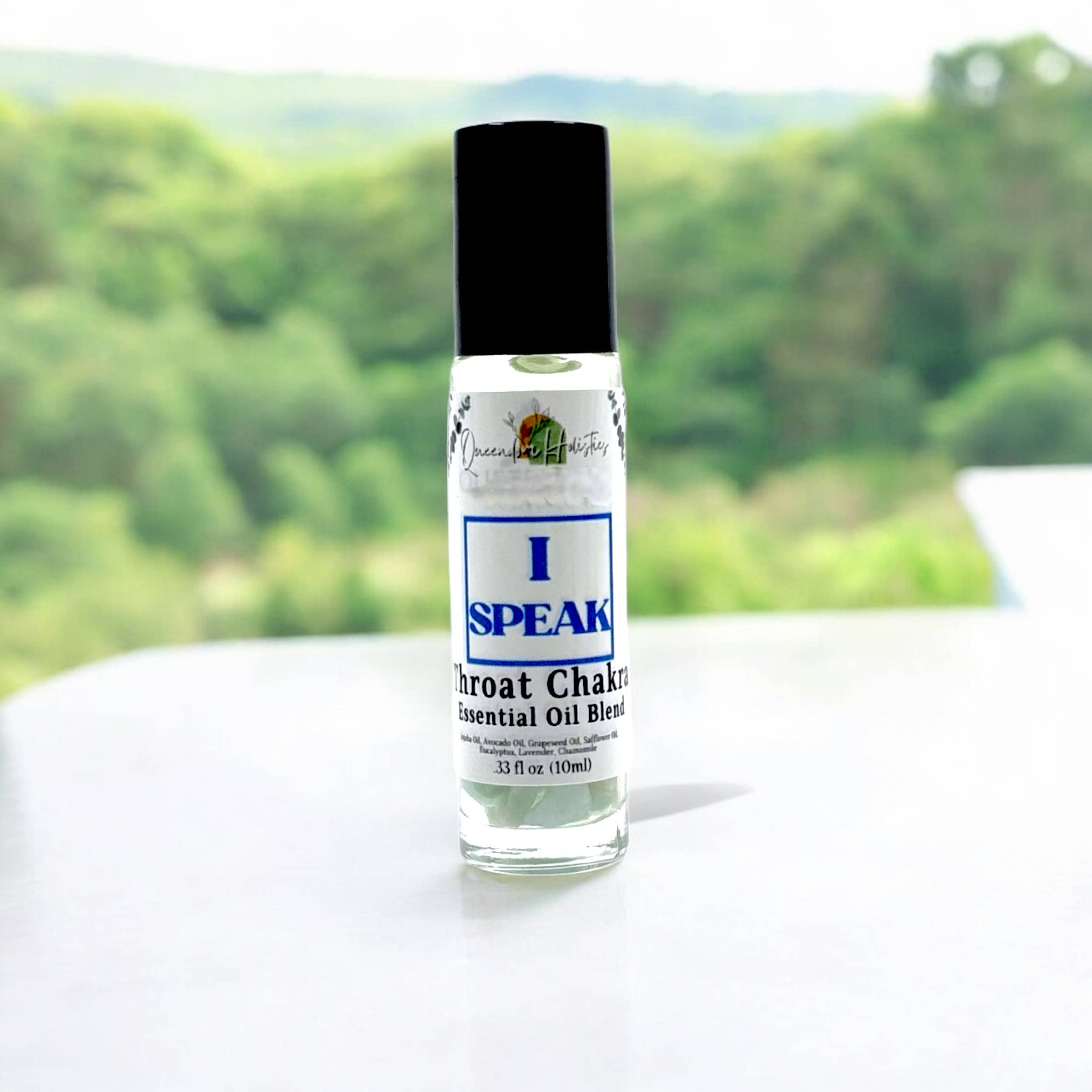 Este roll-on do Chakra Raiz é misturado com óleo de jojoba, aromas terrosos de vetiver e alecrim e cristais de pedra de sangue.