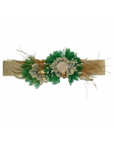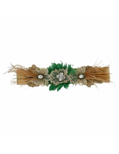Peça para festa em estilo floral, adornada com um véu em rede, centro fantasioso e penas de galo. Feito à mão em nosso atelier em Barcelona. Uma peça única cuidadosamente elaborada com materiais de alta qualidade. Um toque de estilo muito chique! Medidas: 11 x 17 cm.