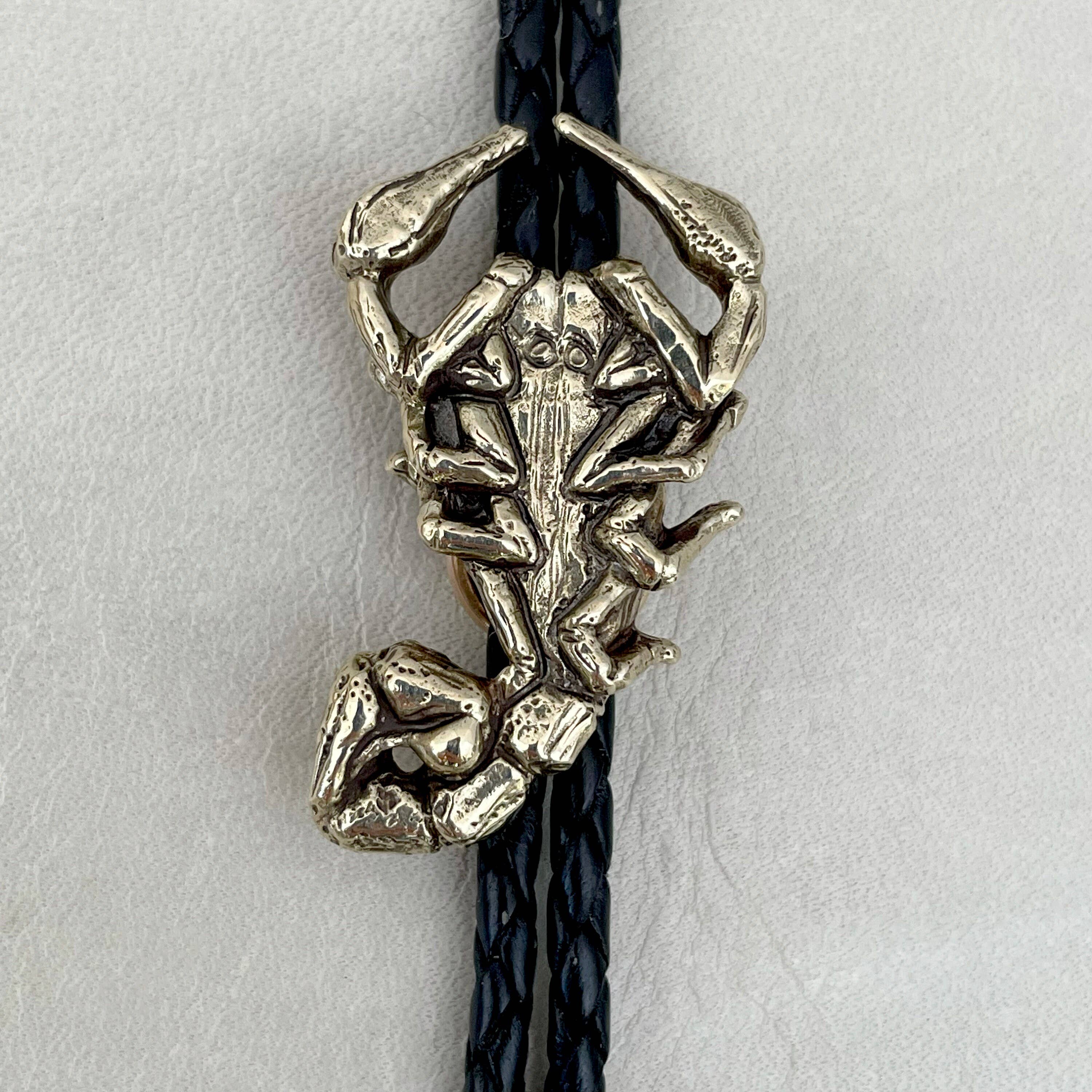 Bolo Tie de Jaguar. Design original esculpido à mão em cera pelo artista Spring Winders e fundido em pequenas quantidades no estúdio Heliotrope em Barrio Viejo, Tucson, Arizona. Em homenagem a uma espécie muito especial de grande felino, o jaguar (Panthera onca) é a única espécie de Panthera nativa das Américas, vivendo numa variedade de habitats que vão desde a América do Sul até às cadeias montanhosas Sky Island do sul do Arizona. Um bolo tie feroz e audacioso. A face do jaguar mede 1,7” de largura x 1,9” de comprimento. Opções de metal: - Latão (tom dourado) - Bronze Branco (tom prateado) - Prata de Lei Maciça Todas as pontas do bolo são de metal base prateado ou dourado. Cordão de couro preto, castanho ou bege entrançado à máquina. Opções de comprimento do cordão: - 36" Recomendado para pessoas com menos de 6' de altura. - 42" Recomendado para pessoas com 6' de altura ou mais. Etiquetas: gato grande felino leopardo chita tigre leão gato selvagem puma pantera sudoeste colar cordão cowboy cowgirl felino