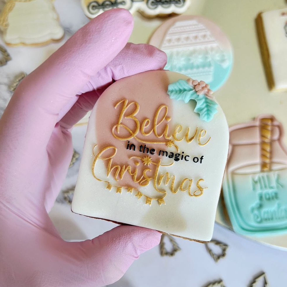 Carimbo com Biscoito. Cupcakes. Debosser de gelo. Natal