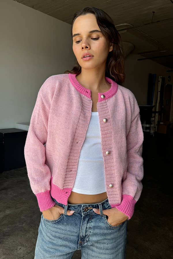 Cardigã em tricô com estampa multicolorida de flores