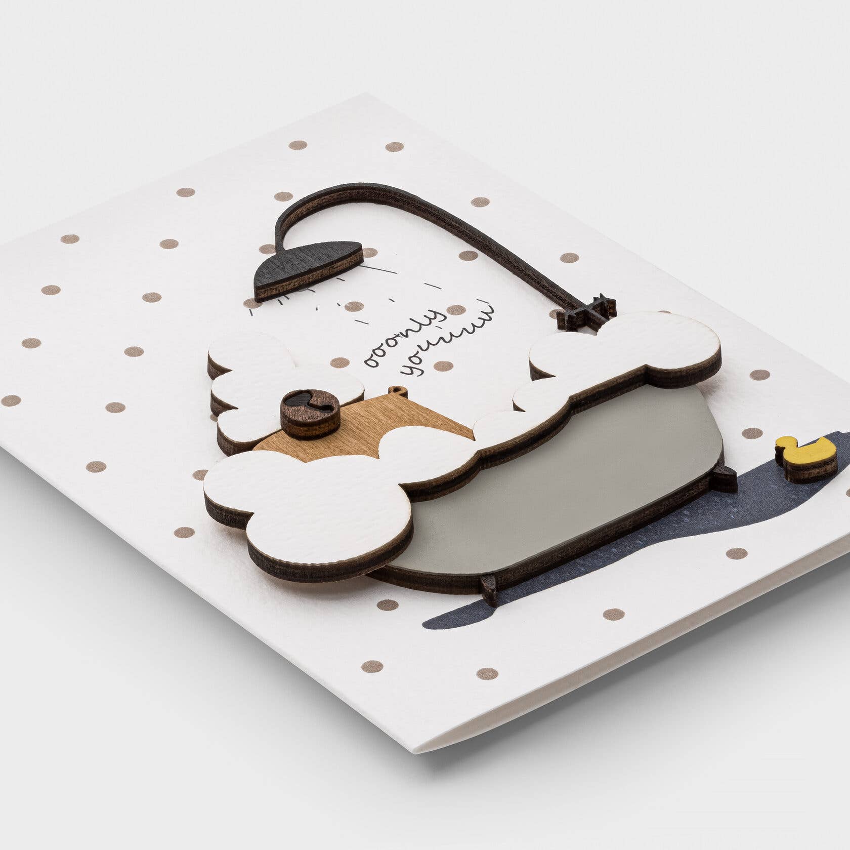 Este cartão de felicitações em madeira artesanal apresenta um design de urso divertido com elementos de madeira em camadas e um tema alegre de "Surpresa". A composição limpa, a textura natural da madeira e os detalhes dimensionais criam um visual acolhedor e moderno, adequado para muitas ocasiões. O seu estilo simples, mas expressivo, torna-o perfeito para transmitir votos de felicidades inesperados, parabéns ou uma mensagem espontânea e atenciosa. Tamanho: 6 × 4 polegadas (148 × 105 mm) Características: • Design de urso 3D em madeira em camadas feito à mão • Cartão de felicitações versátil com tema de surpresa • Estética moderna e minimalista • Interior em branco para a sua mensagem pessoal • Inclui envelope Um cartão de recordação leve e divertido, projetado para transformar qualquer momento numa surpresa agradável e memorável.