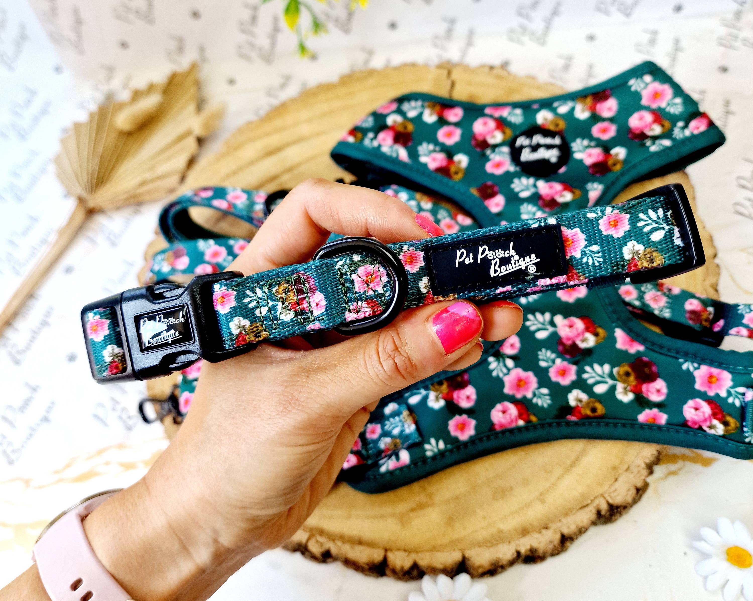 Um tecido verde intenso adornado com pequenos aglomerados de peónias, rosas e folhagens em vermelho, rosa e creme. A colocação do padrão varia de peça para peça. O design reversível significa que tem duas guias em uma! Apresenta uma pega de guia acolchoada com um anel em D (para prender o suporte do saco de dejetos) e um emblema de borracha com logótipo. Desenhado no Reino Unido, uma coleção de design cuidadosamente curada pela Pet Pooch Boutique. Acessórios de metal preto. Tamanho único - 2 cm de largura por 152 cm de comprimento. Coleiras e arnês a condizer. *verifique sempre os acessórios do seu cão quanto a desgaste - nenhum produto é indestrutível. *Verifique sempre os acessórios do seu cão quanto a desgaste - nenhum produto é indestrutível. Todas as partes de cada conjunto precisam ser compradas separadamente, quaisquer vídeos são apenas para conteúdo promocional, e não o que está incluído no anúncio se comprar.