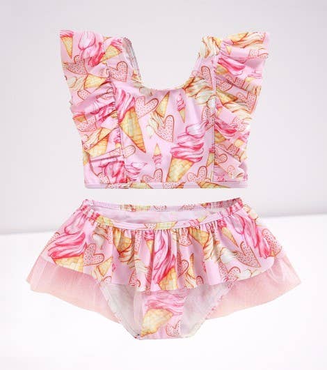 Maiô Infantil Azul Claro com Estampa de Sorvete, Laço e Babados - 1 peça