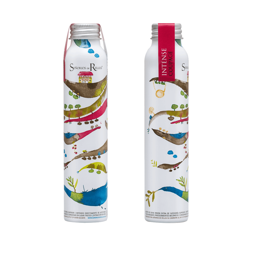 Azeite Extra Virgem Orgânico (EVOO), feito a partir de cinco variedades nativas da COMUNIDADE VALENCIANA (Changlot Real, Manzanilla Villalonga, Blanqueta, Alfafara, Genovesa) e Arbequina. Nós o chamamos de ORGÂNICO. Vem em uma garrafa de alumínio de 100 ml, leve, inquebrável e 100% RECICLÁVEL, que protege o azeite da LUZ, seu maior inimigo. DESCUBRA AS SENSAÇÕES DO MEDITERRÂNEO. VOCÊ NÃO VAI NOS ESQUECER. Dimensões: 3,5 cm (diâmetro) x 15,5 cm (altura) Conteúdo: 100 ml de azeite extra virgem orgânico. Garrafa de alumínio com 100 ml de azeite extra virgem orgânico.