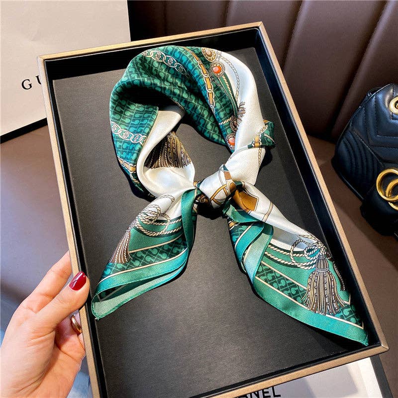 Chain Horse Pattern 100% Lenço de seda de amoreira/Lenço cabeça de seda/Lenço de cabelo de seda/Lenço de pescoço de seda/Presentes de Dia das Mães/Acessório para saco/Presente para ela