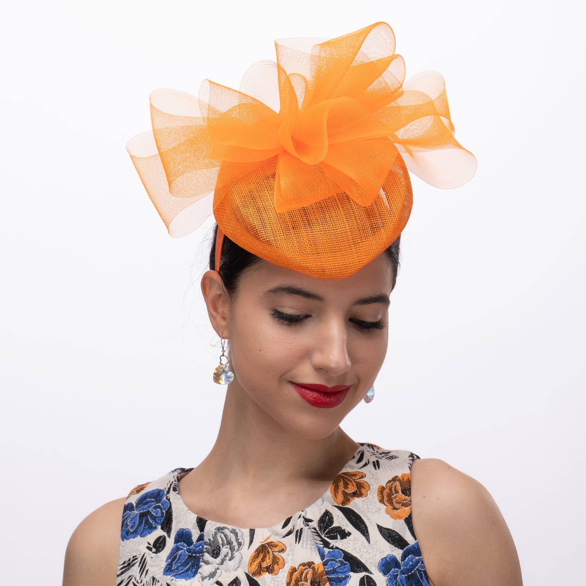Fascinador de Cocktail com Flor de Crinolina, Laço e Pena | 5610H