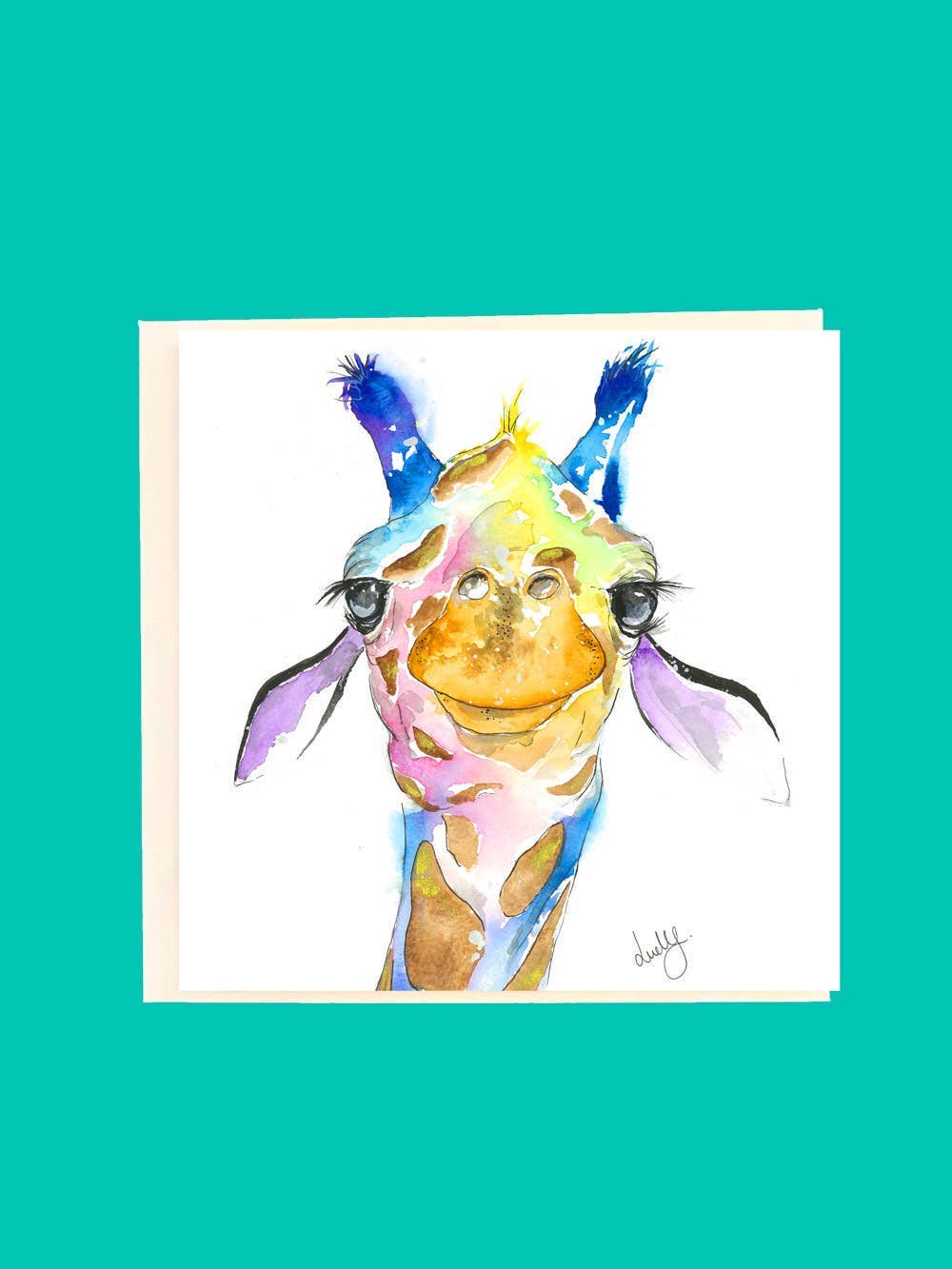 Aguarela pintada à mão Lovelilly Art by Lilly Wells. Projetado para o fazer sorrir! Cores bonitas e vibrantes. Em branco dentro para sua própria mensagem especial. Vendido com um envelope branco texturado num invólucro de celofane. Características: 150mm x 150mm quadrado. Impresso no Reino Unido. Placa certificada FSC.