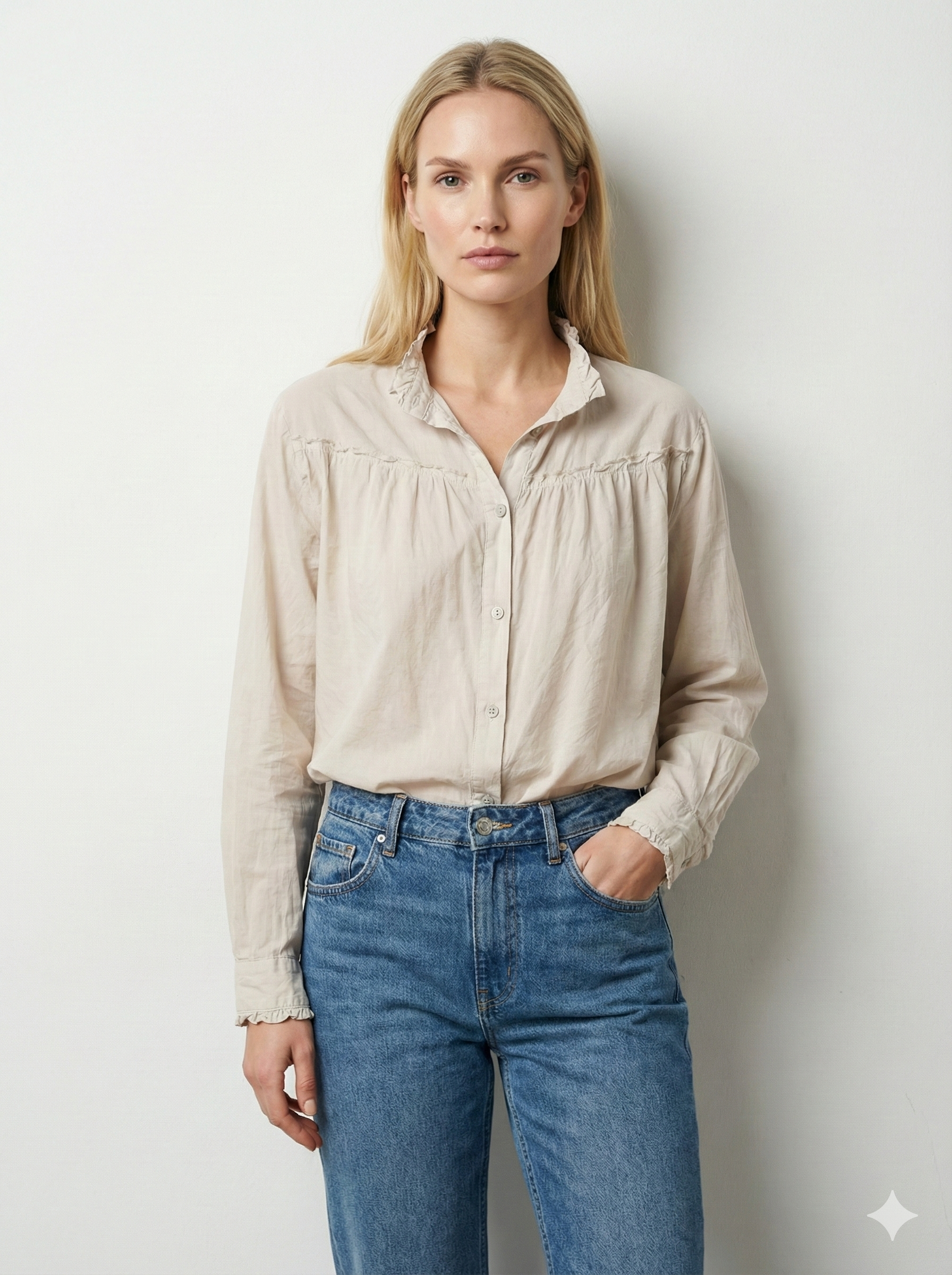 Camisola de Manga Comprida Ajustável com Gola Vichy, Tamanho Único, Serve do 36 ao 42. 100% Algodão