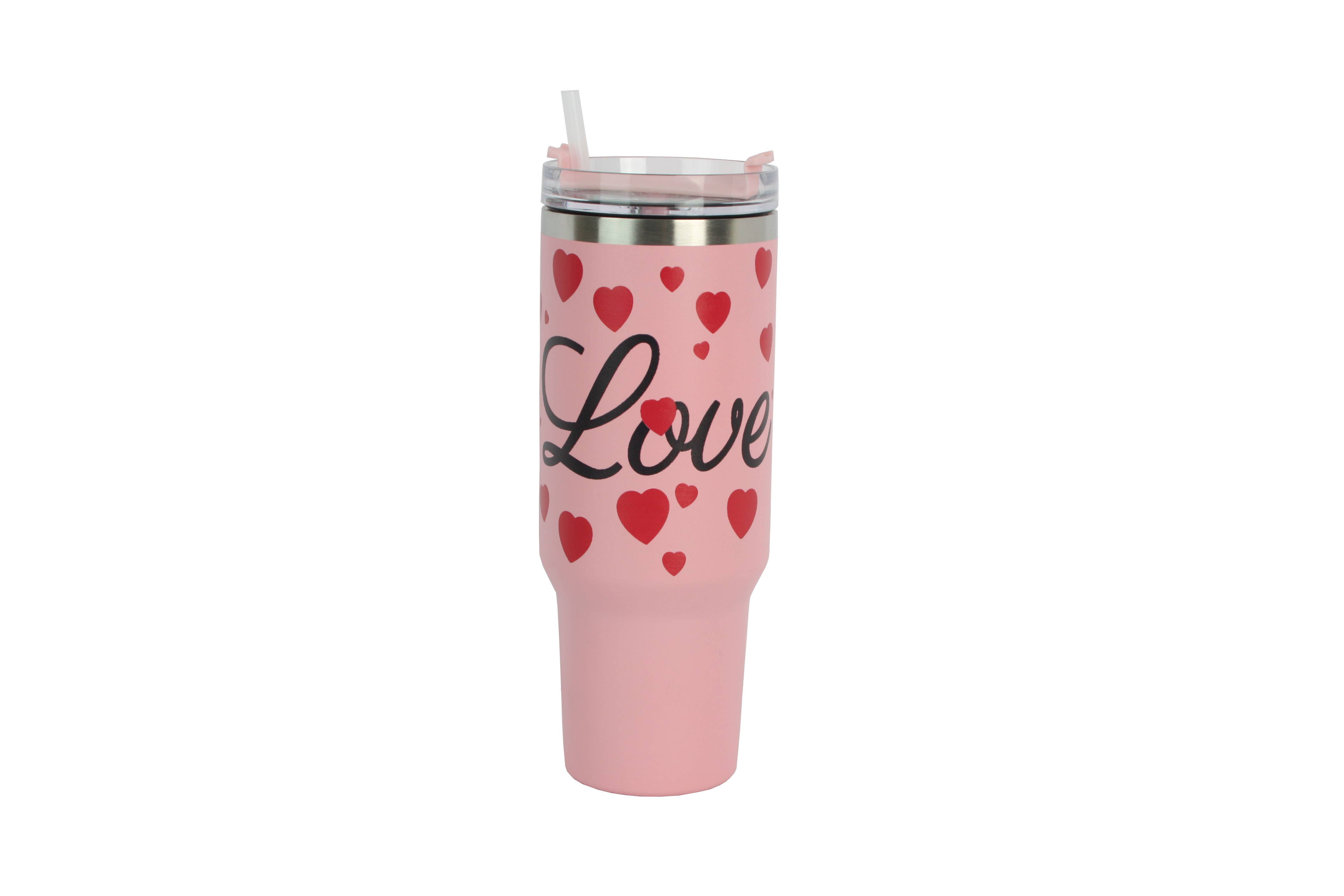 Copo Térmico de 40 oz Temático de Coração Vermelho Rosa Aviso da Proposição 65 da Califórnia "AVISO: Este produto pode conter produtos químicos que são conhecidos pelo Estado da Califórnia por causarem câncer, defeitos de nascimento ou outros danos reprodutivos".