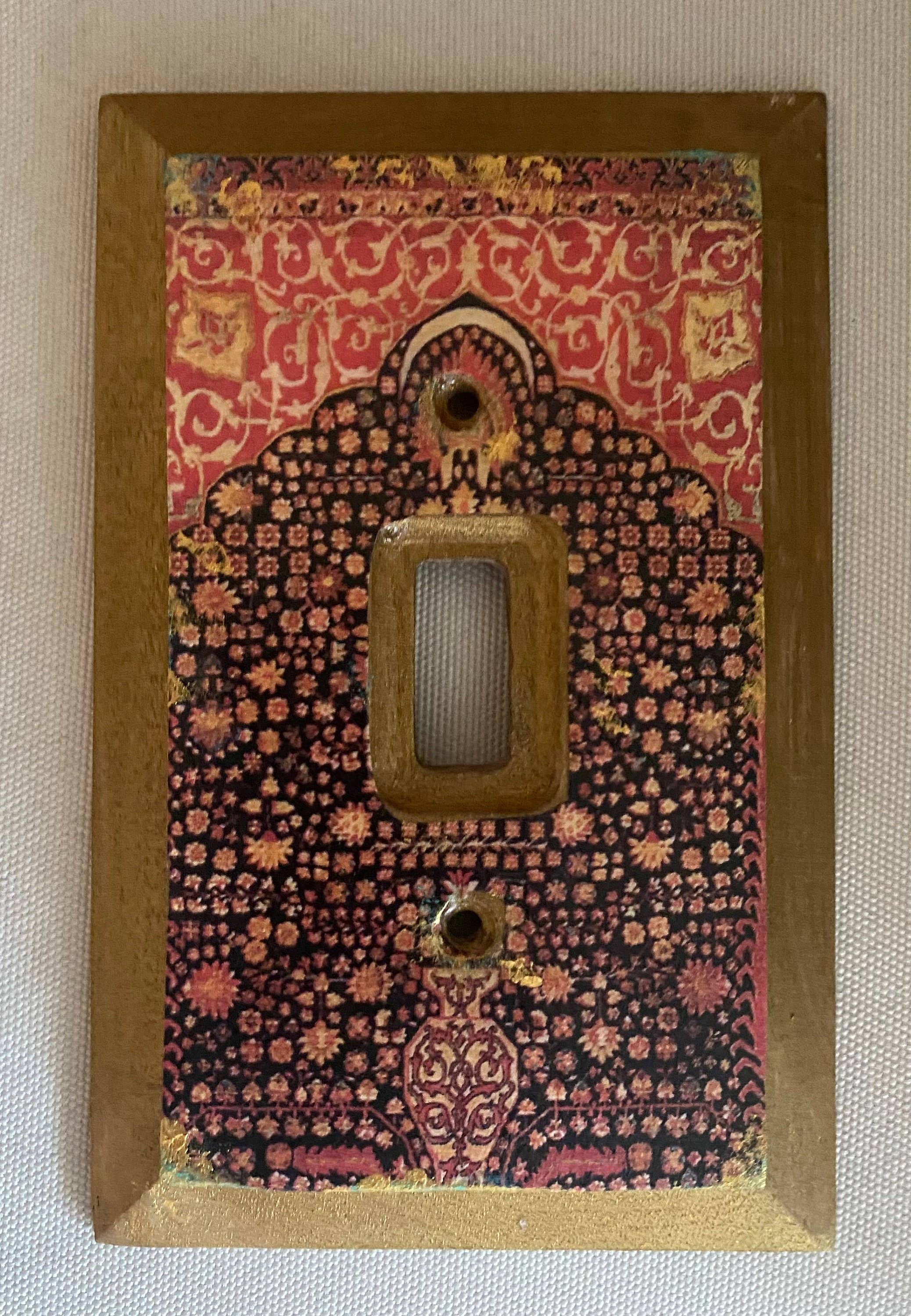 Capa Interruptor Claro, Inspirada Marroquina A minha placa de interruptor de luz de inspiração marroquina é feita na técnica de dissociação, com várias camadas de verniz, angustiadas com tinta acrílica. A limpeza é fácil, pode ser limpo com um pano ligeiramente húmido. Os interruptores estão disponíveis em vários Tamanhos/Tipos, como placa de interruptor duplo, tampa de saída, placa de interruptor triplo. A placa vem com 2 parafusos de latão.
