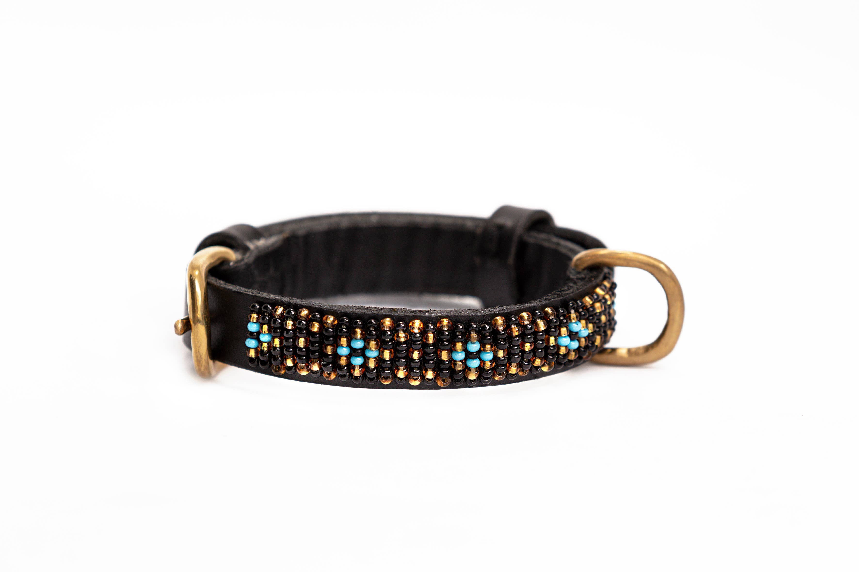 Esta coleira para cachorro é feita de couro natural de vaca queniana, curtido de forma vegetal para garantir durabilidade e respeito ao meio ambiente. Por dentro, possui forro macio em couro de cabra também curtido vegetalmente, oferecendo mais conforto ao animal. A combinação elegante de cores preta, vermelha, dourada e verde cria um visual único e bonito. Os detalhes em latão são feitos à mão por artesãos locais que utilizam latão reciclado. A coleira é ricamente decorada com miçangas 100% de vidro, costuradas e bordadas manualmente para maior durabilidade e beleza duradoura. Como bônus, acompanha um chaveiro de miçangas com um padrão contrastante que combina perfeitamente. Disponível em tamanhos que variam de mini a extra grande. Ao adquirir uma coleira da Zinj Design, você não recebe apenas um produto único e bonito — você também contribui para uma causa nobre. Produtos artesanais feitos com humanidade e amor. Consulte o guia abaixo para instruções.