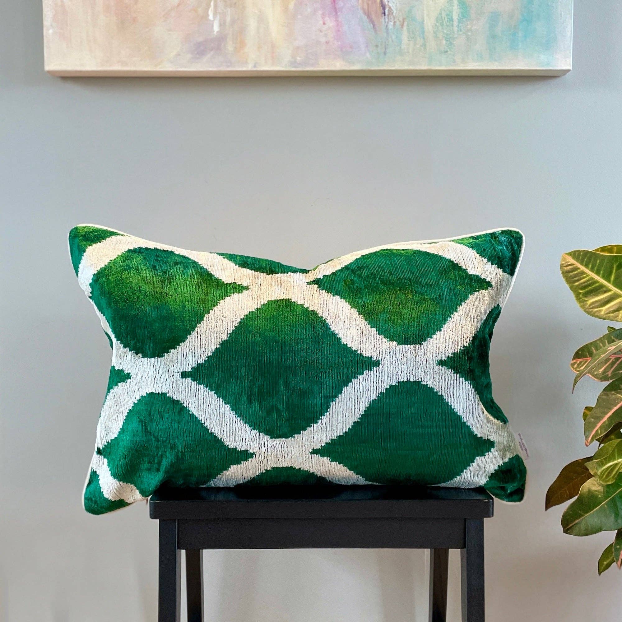 “Almofada Decorativa Ikat Veludo Almofada Lombar Pink Silk Ikat Velvet, conjunto de duas fronhas lombar de veludo colorido, par de almofada desenhadora do Uzbequistão -Capa de almofada luxuosa de tecido ikat artesanal -A inserção NÃO está incluída -Cor: Colorido -Ikat é um belo tecido, cada almofada é única mas também pode conter pequenas imperfeições; o charme de um produto artesanal. Dimensões: 15 16W (40 Cm) × 6,0D (15 Cm) × 2324H (60 Cm) aprox Atenção: Uma vez que o ikat é um tecido artesanal, a largura e comprimento da almofada de arremesso podem ser alguns centímetros mais pequenos ou maiores. -Handloom 100% tecido veludo de seda - Lado traseiro é tecido de algodão e com fecho oculto. -Só estojo de almofada de veludo, tecido manual, -Lavagem à mão a 30 C ou limpo a seco -Podem aplicar-se deveres personalizados.”