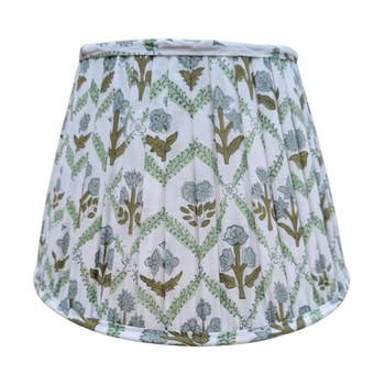 Esta cúpula empire é pregueada à mão em algodão com estampa em bloco. A cúpula é dupla face e finalizada com um acabamento francês auto-dobrado. - A cúpula tradicional mede 28 cm x 41 cm (diâmetro x profundidade) x 29 cm (altura) e possui encaixe tradicional com arruela. - A grande cúpula para pendente tem 46 cm x 61 cm (diâmetro x profundidade) x 36 cm (altura) e vem com cordão torcido com soquete para uma lâmpada, ou candelabro de latão com 4 soquetes para candelabro. Inclui 0,91 m de corrente. - A cúpula para arandela mede 10 cm x 13 cm (altura x profundidade) x 15 cm (diâmetro).