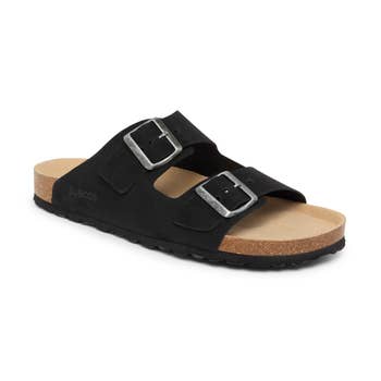 Sandálias de couro preto Homens, Sandálias Slingback