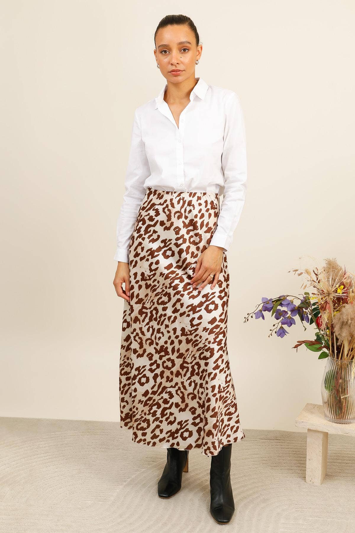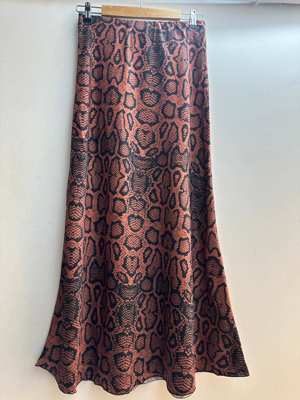 Saia longa fluida e leve 10480LC com cintura elástica e estampa animal