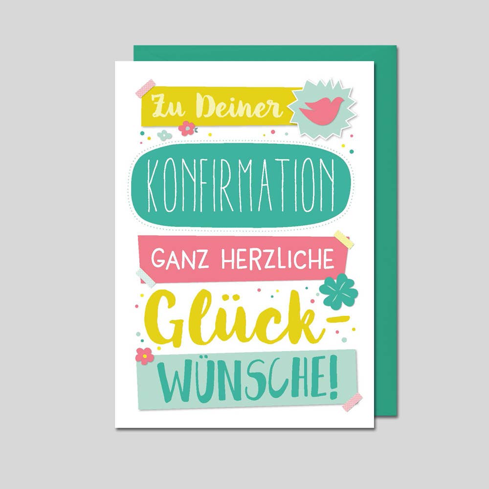 Parabéns “Por Confirmação”. Tamanho do cartão 12 x 17 cm, entregue com um envelope colorido a condizer.