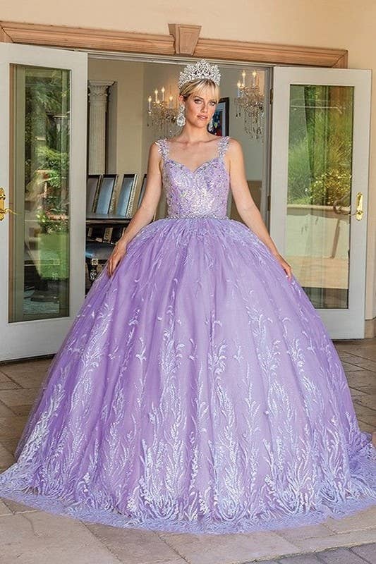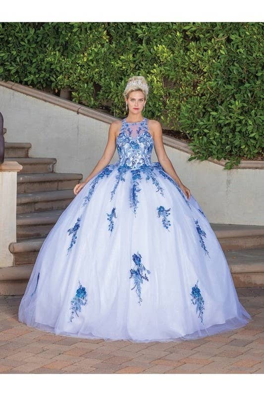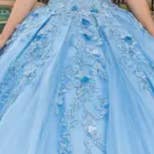 Vestido de Baile com Mangas Transparentes, Apliques Florais e Corpete Bordado para Quinceañera