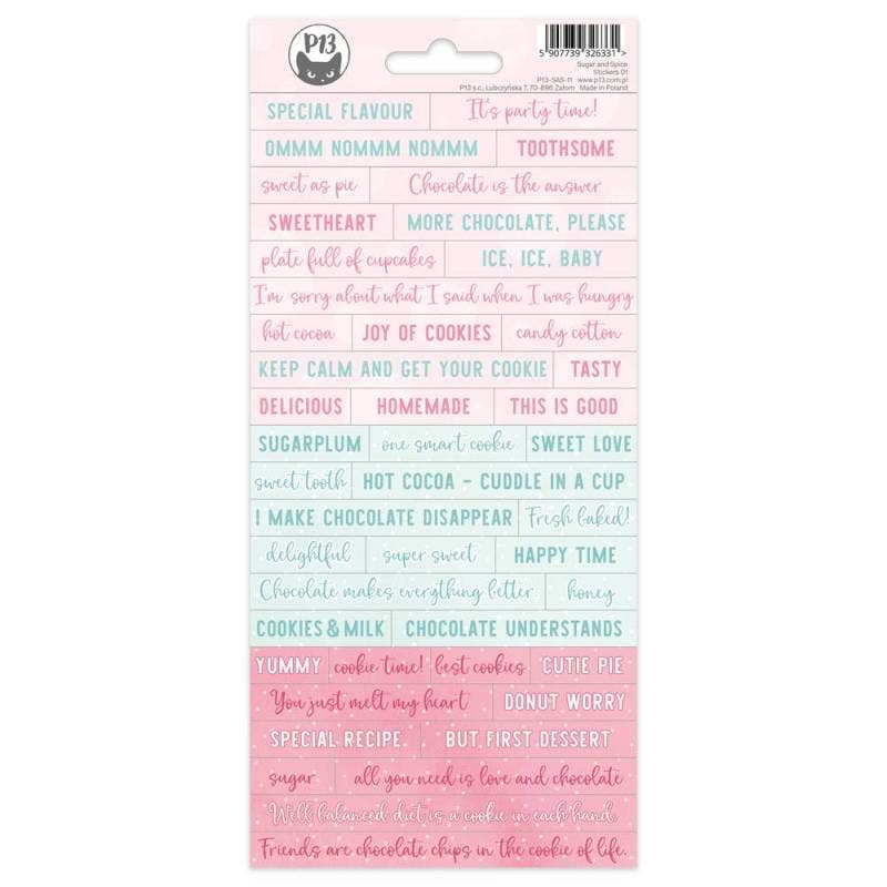 Folha de autocolantes em papel 10,5 x 23cm, 45pcs. Peso de papel pesado com cola muito forte, acabamento acetinado. Nesta folha de autocolantes encontra palavras e frases em inglês ligadas a uma colecção. Dica profissional: Veja também os outros autocolantes desta coleção — são a combinação perfeita e, juntamente com os papéis, ajudam-no a criar projetos deslumbrantes. Os nossos autocolantes são muito grossos e a cola forte que usamos permite que sejam fixados em apenas um ou dois pontos.
