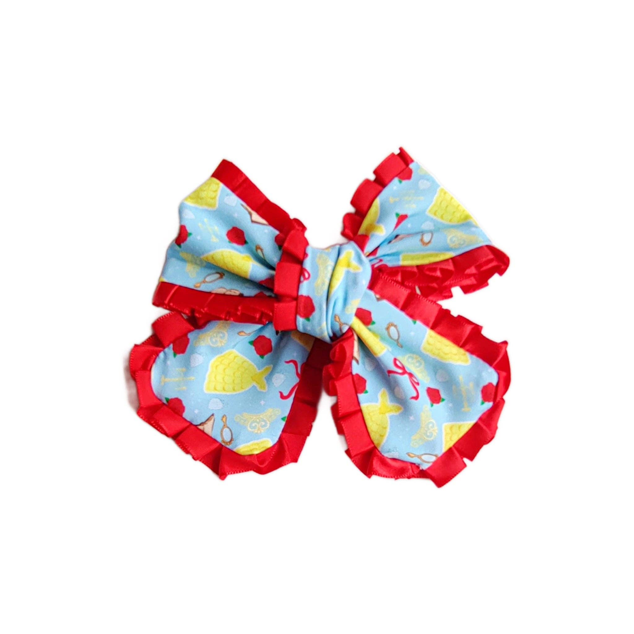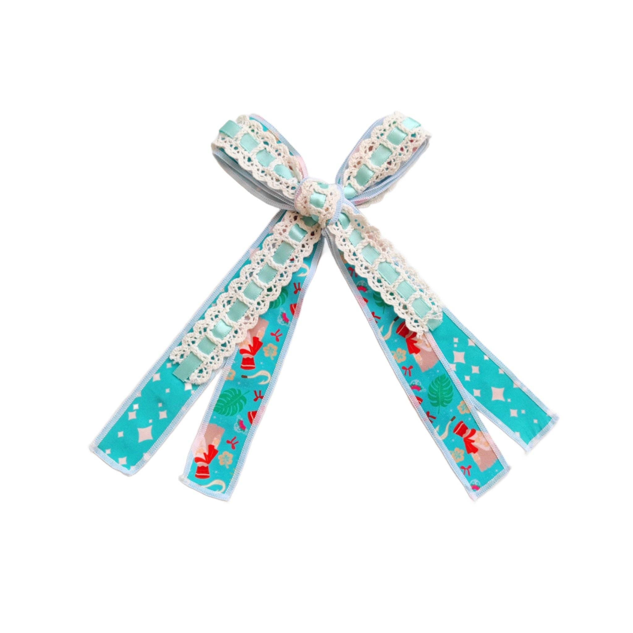 Laço de Cabelo Comprido com Fita Azul Xadrez e Borda, com Presilha