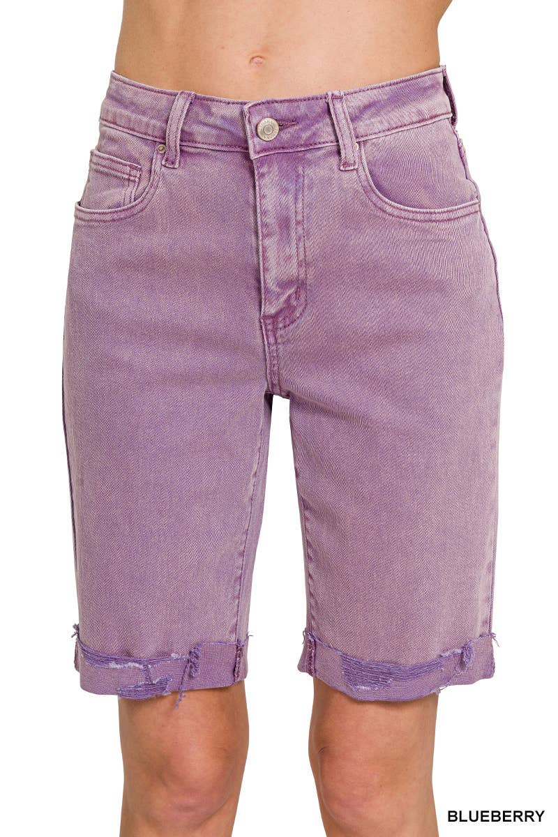 Calções Lavadas com Gaze Dupla com Bainha Desfiada