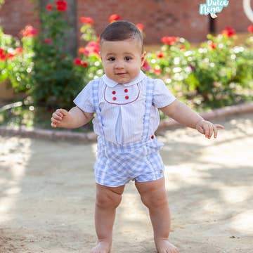 Um conjunto doce e simples que é perfeito para a diversão de verão no campo de golfe com o pai ou apenas para brincar no quintal! Este conjunto vem com uma t-shirt branca de malha 100% algodão com um inserto central com bordado de imagens temáticas de golfe e uma saia-calção xadrez verde e branca a condizer. As bordas com acabamento em picot rosa na t-shirt adicionam um toque extra de estilo. Feito com um tecido misto de algodão/poliéster que é leve e lavável à máquina para fácil manutenção.