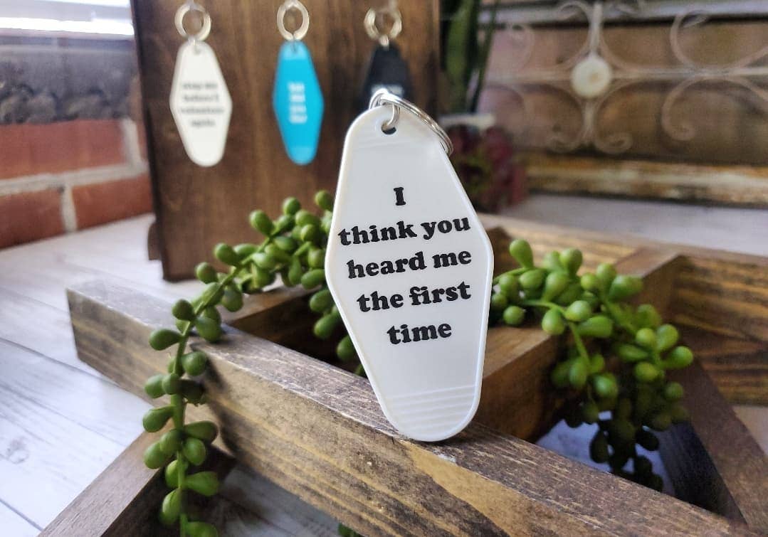 Chaveiro de hotel retrô personalizável - Estado personalizado