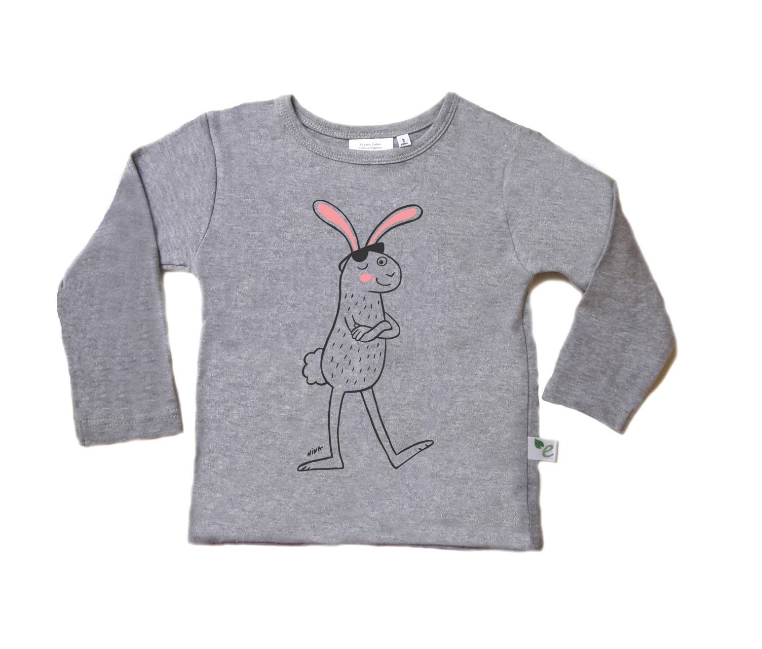 T-shirt de manga curta 100% algodão orgânico macio (GOTS) escolhida com cuidado especial para a pele sensível dos bebés. Desenho de impressão: Nina Cuneo