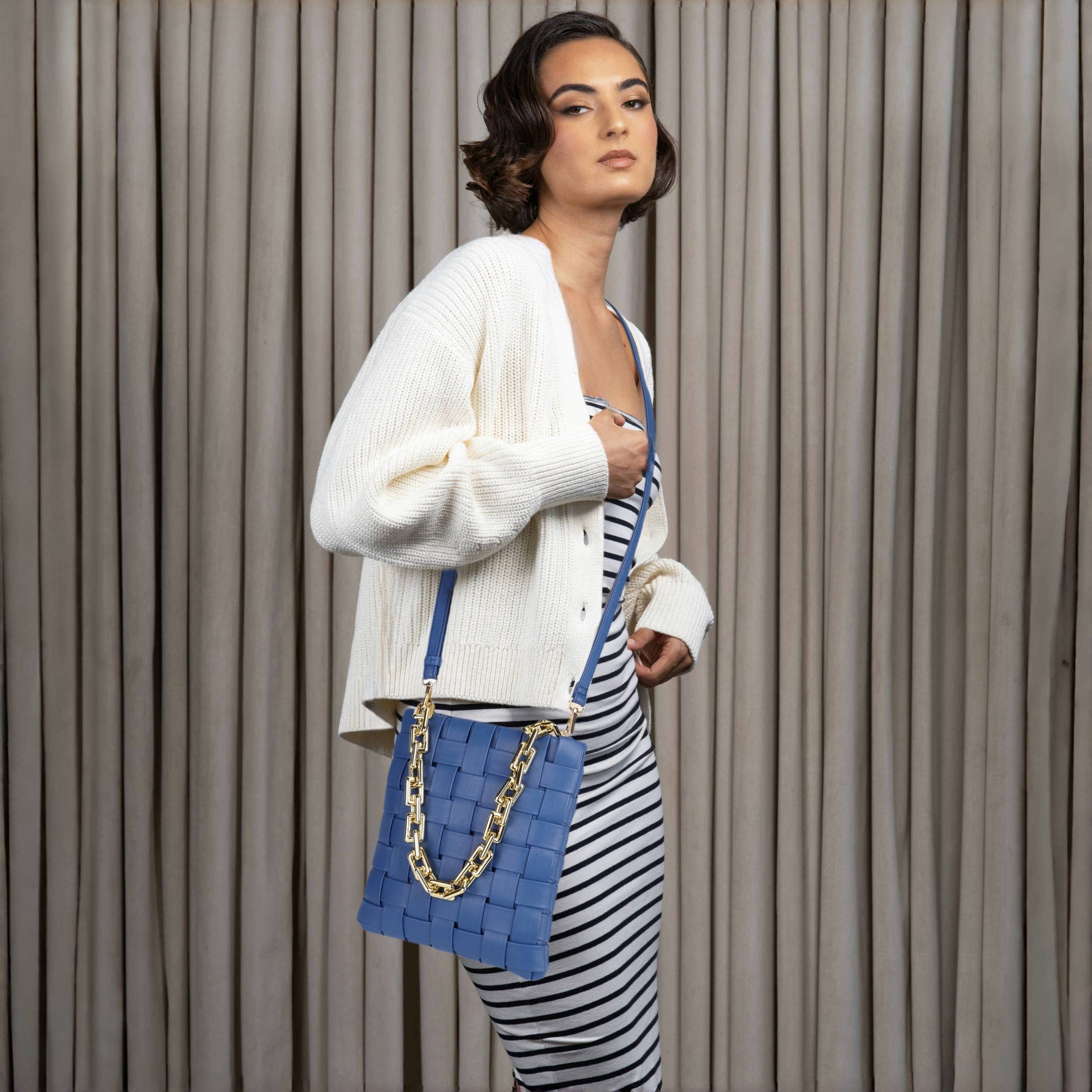 Bolsa de tiracolo Anabel 2 em 1 com corrente de bola dourada ajustável