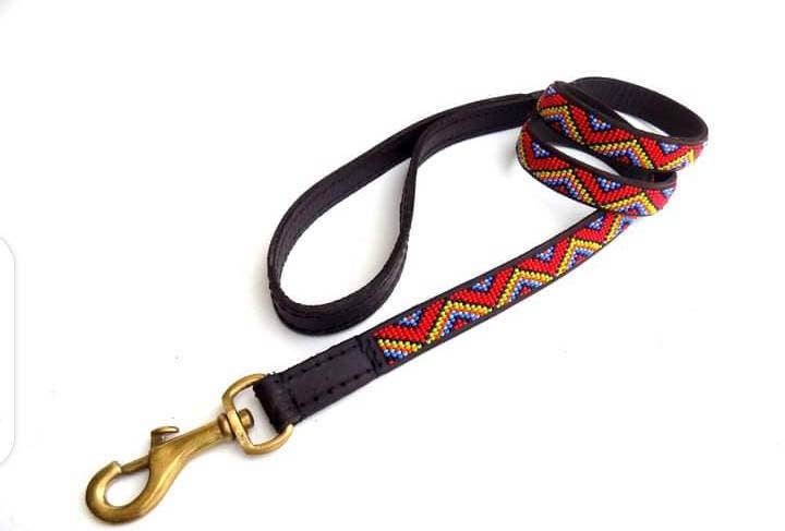 Coleira de Cão Maasai de Couro com Missangas Feita à Mão com Envio Grátis