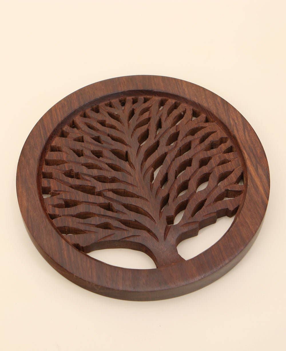 Faça a sua mesa destacar-se com a requintada escultura da árvore da vida deste trivet. Os artesãos do comércio justo modelam o seu design ornamentado cortando madeira de manga num torno, depois gravando e branqueando cada peça à mão. * Trivet temático da Árvore da Vida * Feito de madeira de manga sustentável * Apelo rústico bruto esculpido à mão * Mede cerca de 8 X 8 polegadas * Belo design com alta utilidade * Comércio justo e artesanal na Índia Feito à mão: este artigo foi artisticamente criado à mão, onde a beleza e as imperfeições andam maravilhosamente juntas. Por favor, aceite e aprecie pequenas imperfeições e variações, que são verdadeiras características deste ofício. Destaques do Produto Produto artesanal Produto de Comércio Justo