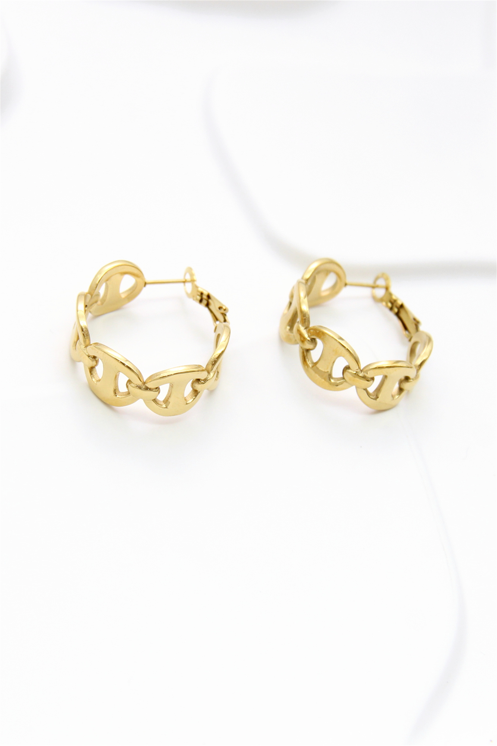 Arrojados e escultóricos, estes brincos alongados em forma de folha conquistam pelo seu design geométrico fluido. Produzidos em aço inox dourado, combinam modernidade, resistência ao desgaste e um toque botânico, ideais para uma coleção moderna e durável.