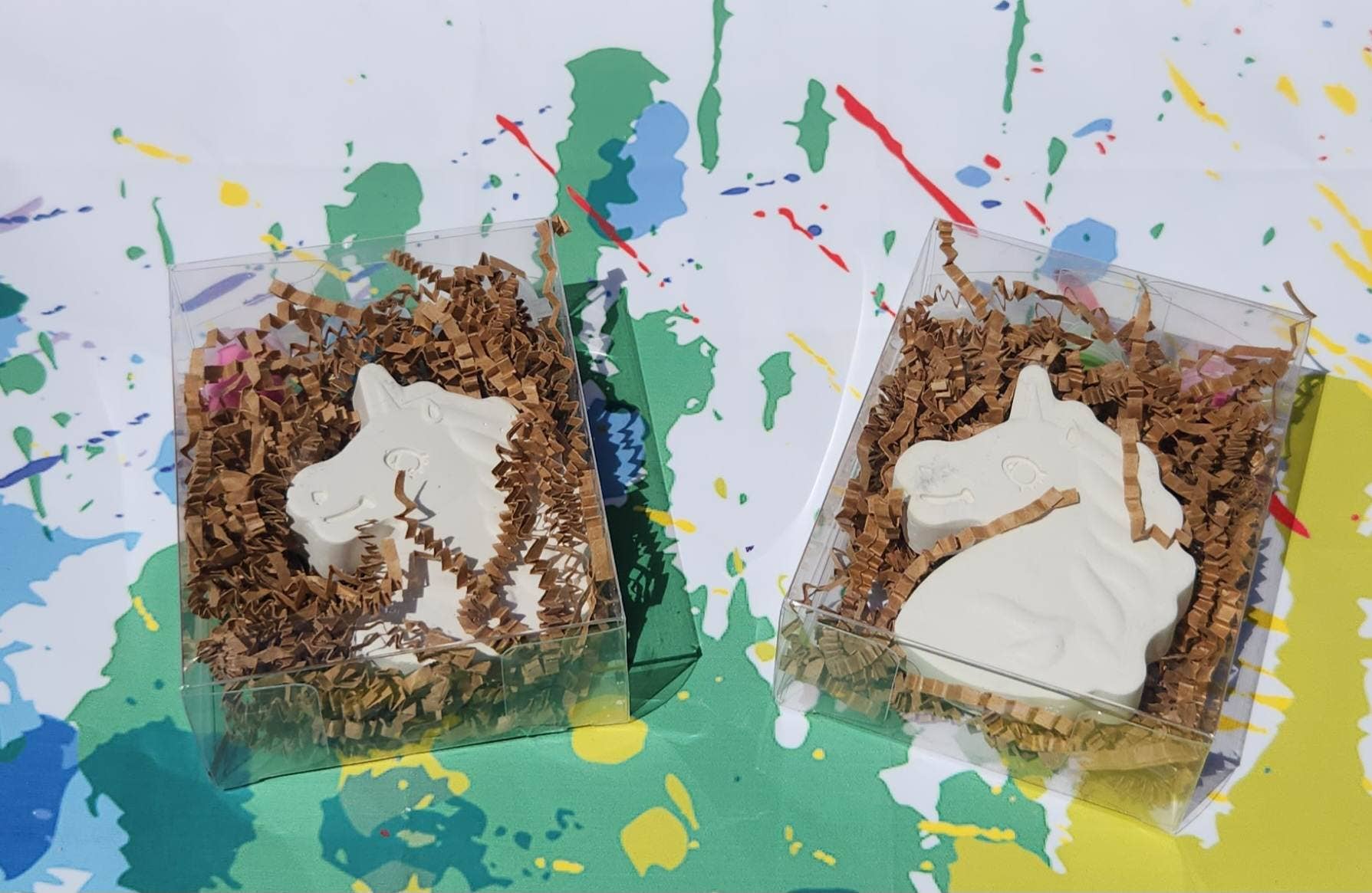Observe que todos os kits de pintura levam de 3 a 4 dias para serem processados antes que eu possa embalar. Encomende pedidos grandes, considere 2 a 3 semanas antes do seu evento para fazer o pedido. Você também pode entrar em contato para ver se temos estoque feito e pronto para envio oi! Aqui você tem algumas lembrancinhas fofas! Pinte seus próprios kits! Este é um item por anúncio o que você receberá por pedido tudo intacto, conforme mostrado 1 caixa transparente 1 pincel pequeno 1 cauda ou concha de sereia de gesso (aproximadamente 3 polegadas) 1 tinta (3 cores) estes também podem ser usados para giz