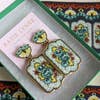 Esta é uma linha personalizada de brincos que vale a pena esperar. Peças lindamente trabalhadas, únicas. Adoro os cartões manuscritos que identificam de onde vieram os tecidos.
