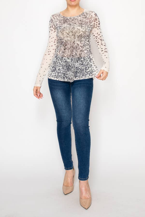 Top de Malha Transparente com Manga Comprida Brilhante – 4847TP VINT BIRD