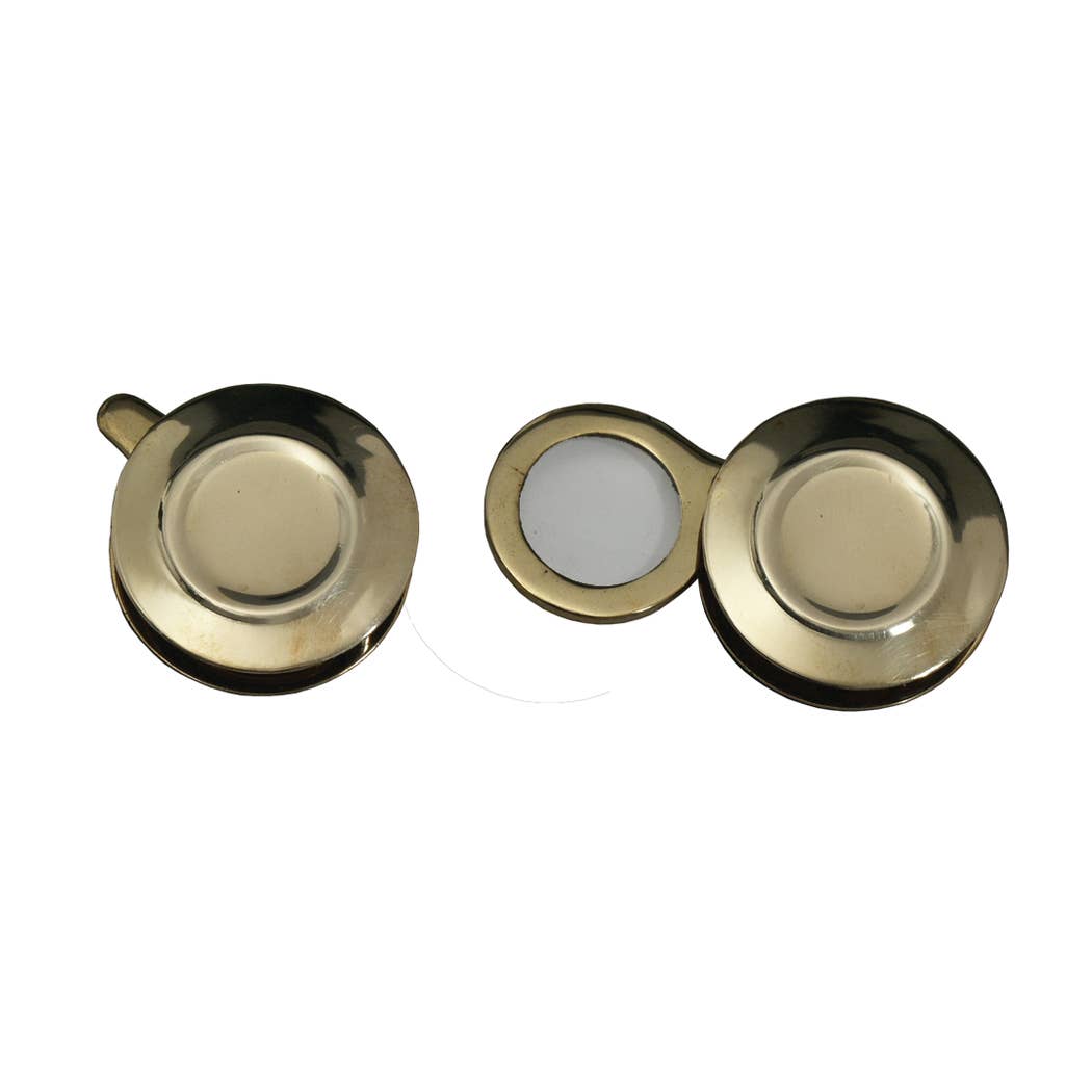 Esta lupa única de latão maciço é perfeitamente portátil graças ao seu engenhoso cabo dobrável com design detalhado. Medindo 12 cm aberta e 5,7 cm dobrada, o acabamento envelhecido complementa o estilo vintage. Um acessório elegante para mesa, também é excelente para leitura de letras pequenas ou trabalhos manuais e artesanato de perto.