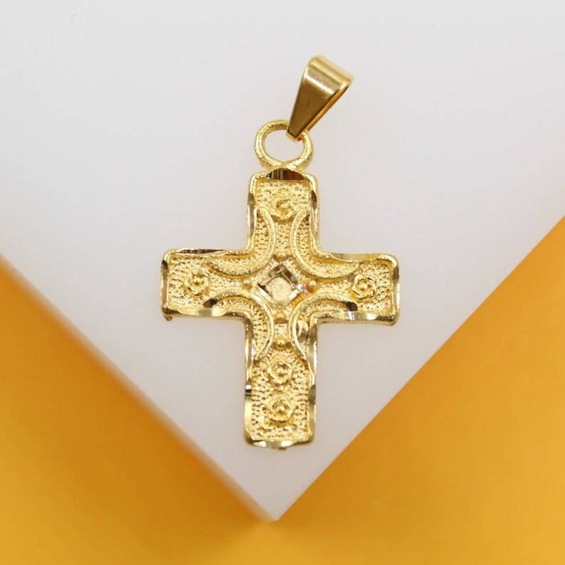 Pingente Cruz Cristã com Pérola em Ouro 18K (A344)