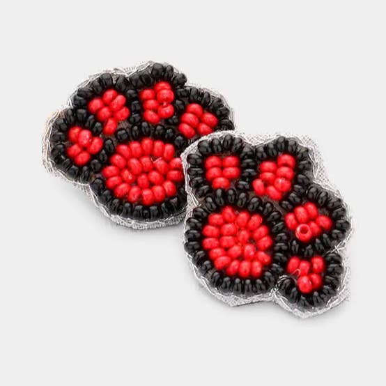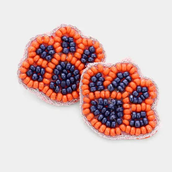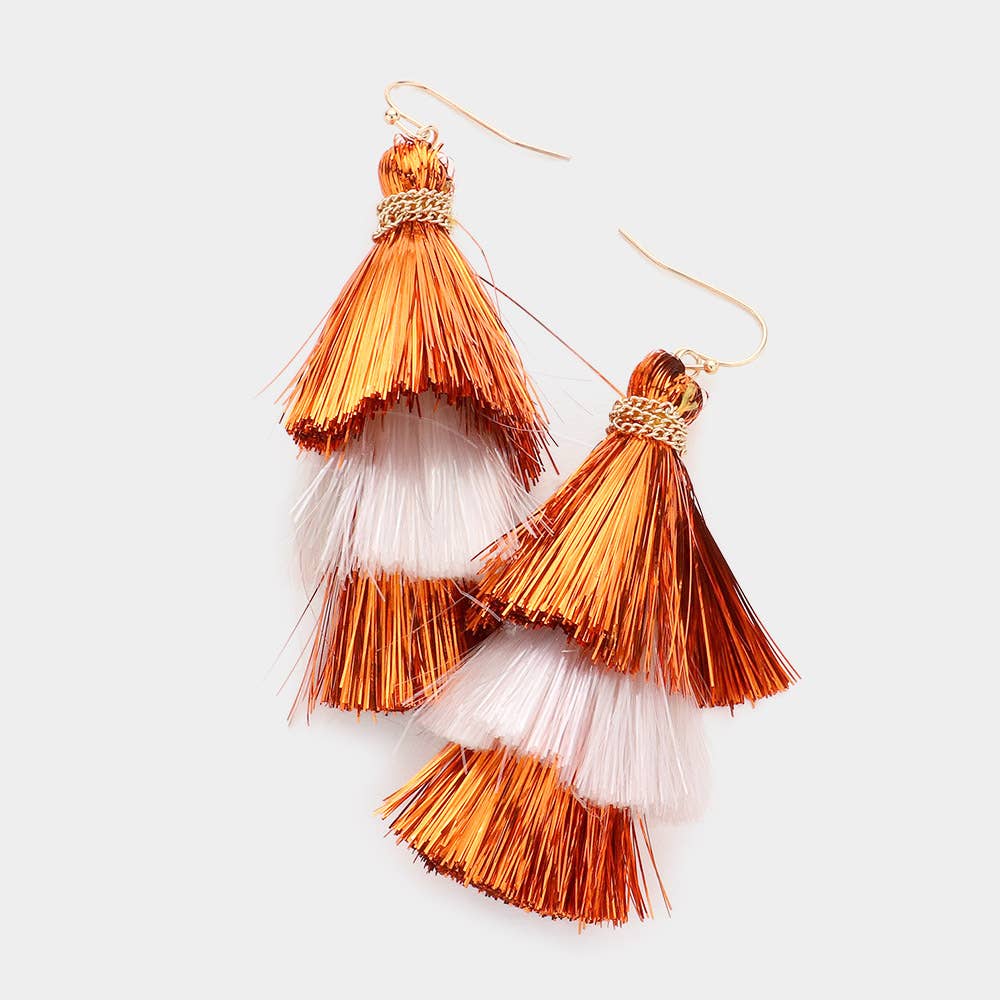 Brincos Pendentes com Missangas em Forma de Hexágono Aberto com Borla de Ráfia para Dia de Jogo • Tamanho: 1,75" X 2,7" • Gancho de Peixe • Conformidade com Chumbo e Níquel