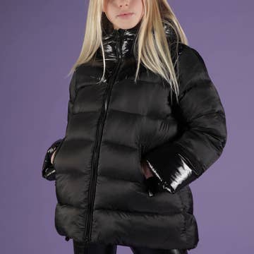 Jaqueta Puffer Leve com Capuz e Enchimento de Penas de Ganso