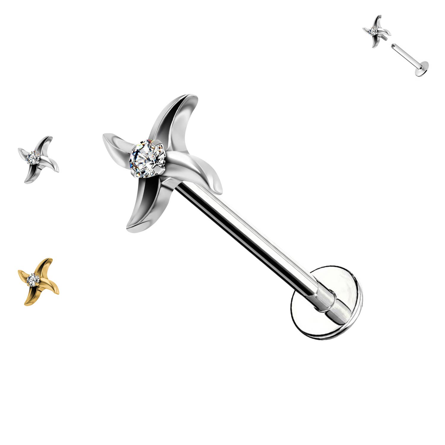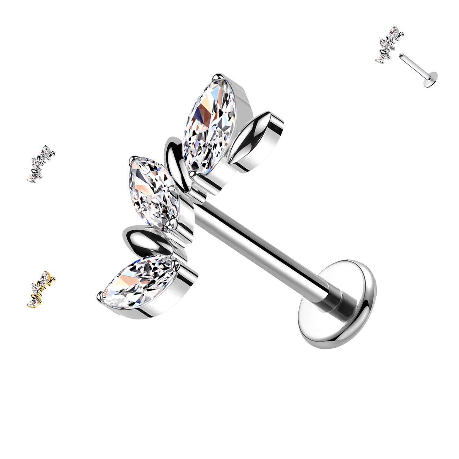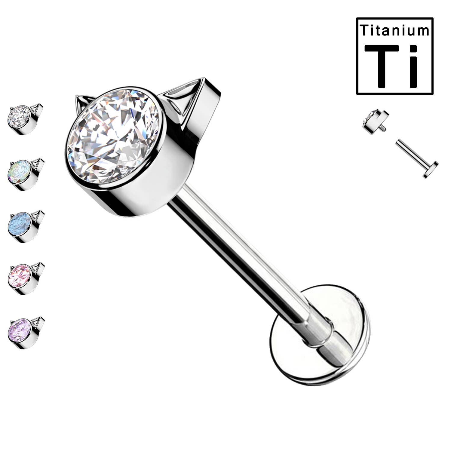 TITÂNIO - LABRET CONE/ESPIGA, PIERCING DE LÁBIO ‐ 14G, 16G, 18G