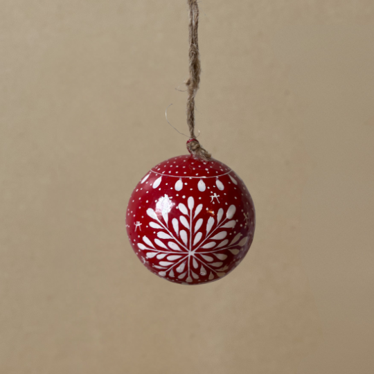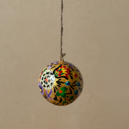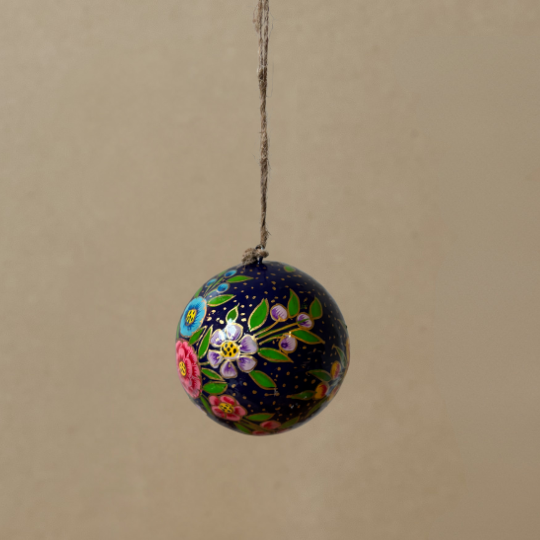 Feito à mão individualmente pelos habilidosos artesãos e artesãs da Caxemira usando papier-mâché. São então pintados à mão com designs tradicionais da Caxemira. Decoração Individual Disponível em 2 tamanhos Médio 2" Grande 3" Todos os nossos ornamentos pintados à mão são feitos de papier-mâché e pintados à mão na Caxemira. Desde decorações de Natal suspensas a presentes de Páscoa e, mais recentemente, os nossos castiçais de madeira, encontrará algo bonito e único. Com foco em fontes éticas e práticas sustentáveis, cada decoração da nossa coleção é feita com cuidado e consciência. Ao apoiar a Dalit, não está apenas a adicionar beleza à sua casa – está também a capacitar artesãos e comunidades necessitadas. Criando um efeito dominó de mudança positiva que se estende muito além da sua porta. Então, por que se contentar com decorações comuns quando pode adornar a sua casa com o extraordinário? Explore a Coleção de Decorações Sazonais da Dalit hoje e descubra a magia de celebrar com estilo.