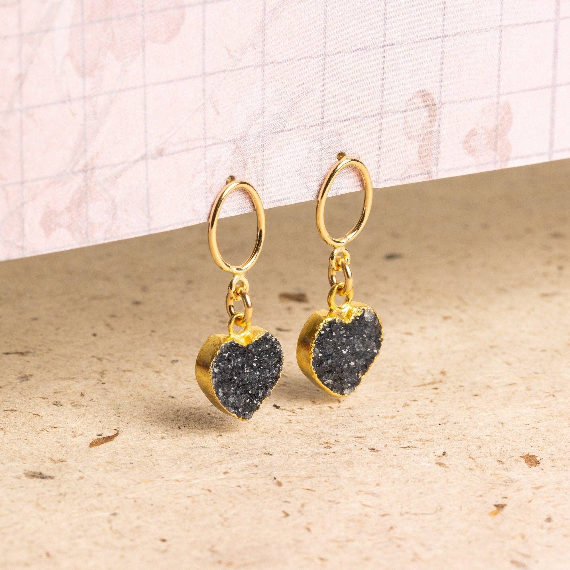SKU: HEART-BLACKDRUZY Fabricado em Estados Unidos Cor: Ouro amarelo e Preto Estilo: Clássico e Minimalista Material: Enchimento de ouro e Ouro vermeil Tema: Amor Tipo de pedra: Drusa Idioma do produto: Inglês