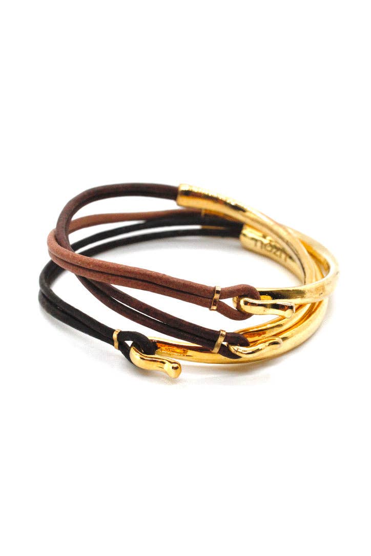 Placa de ouro 24K e pulseiras em couro -4 pulseiras- combo #5