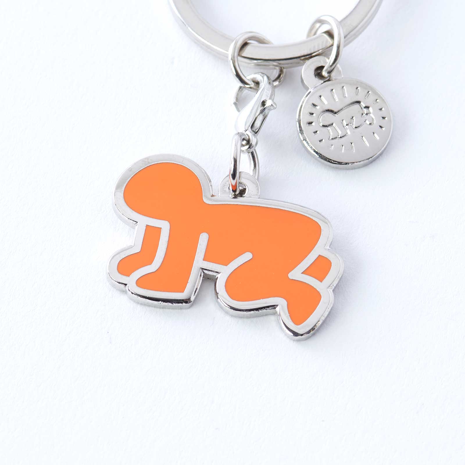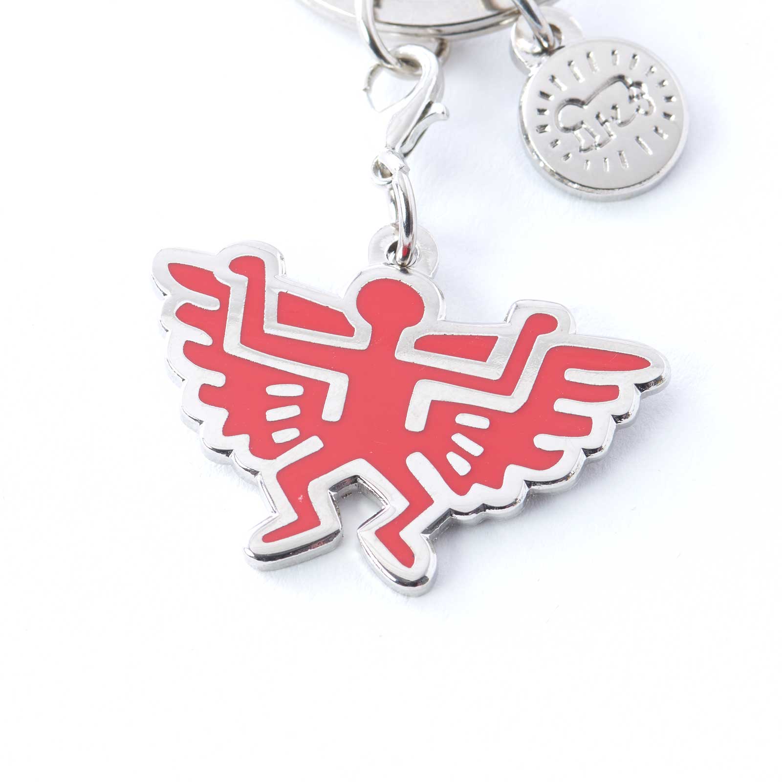 Chaveiro em latão com banho de prata e acabamento em esmalte duro. © The Keith Haring Foundation. Licenciado por Artestar, Nova York.