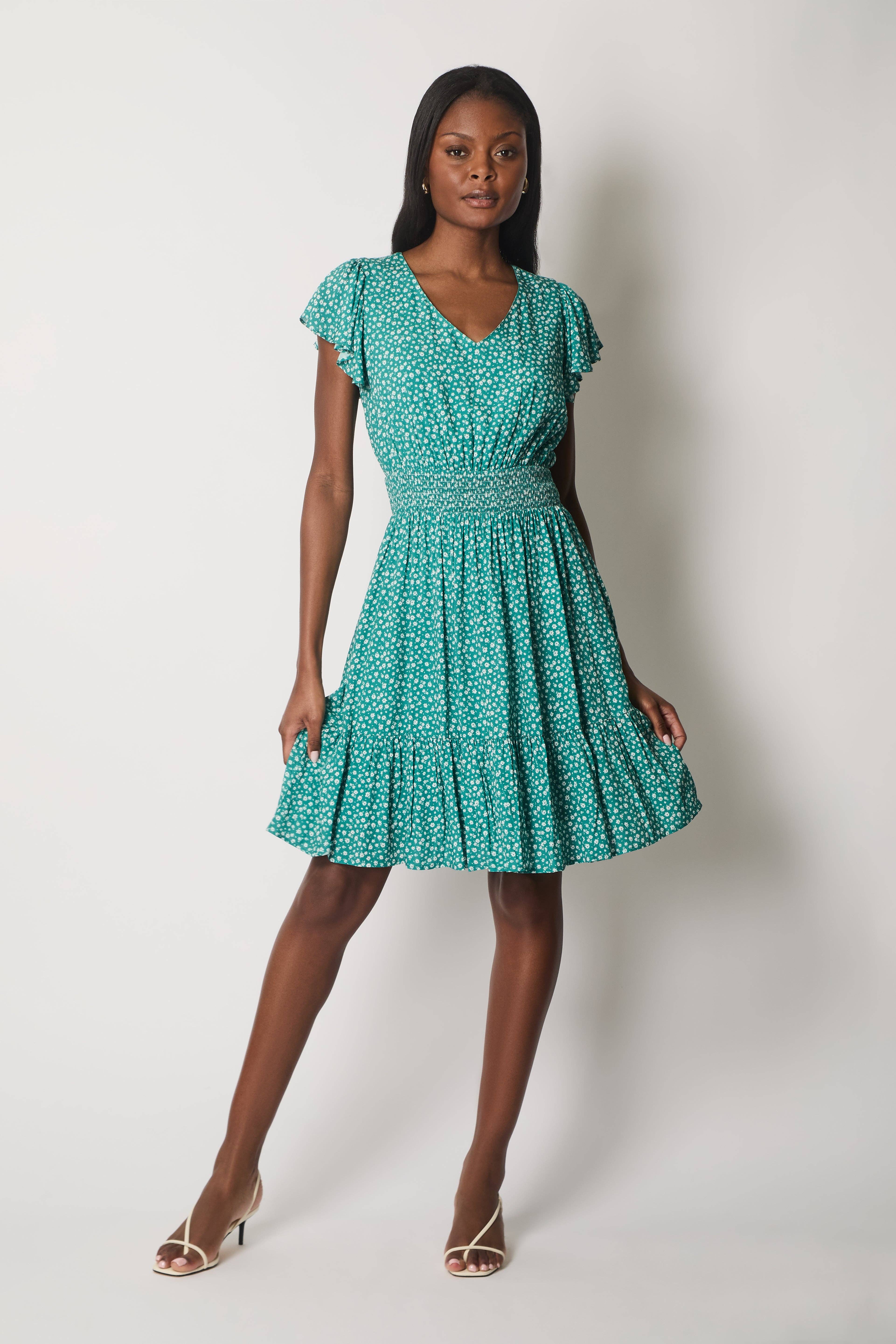 Este vestido midi floral elegante e fácil de usar é essencial para o verão. Com decote em V que valoriza a silhueta, mangas evasê e cintura franzida, oferece conforto e feminilidade. A saia em camadas proporciona movimento, ideal para passeios diurnos descontraídos ou festas de jardim no verão.