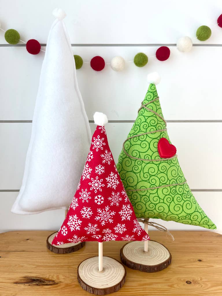 Inspiradas em um estilo natalino vintage, nossas árvores adicionam o toque perfeito a qualquer decoração de Natal ou festas. Tamanhos aproximados: Pequena 25,4 cm x 15,2 cm Média 30,5 cm x 21,6 cm Grande 41,9 cm x 19 cm Você receberá uma árvore de cada tamanho. As medidas são aproximadas e podem variar um pouco conforme o tecido utilizado. Outros itens decorativos mostrados na foto não estão incluídos.