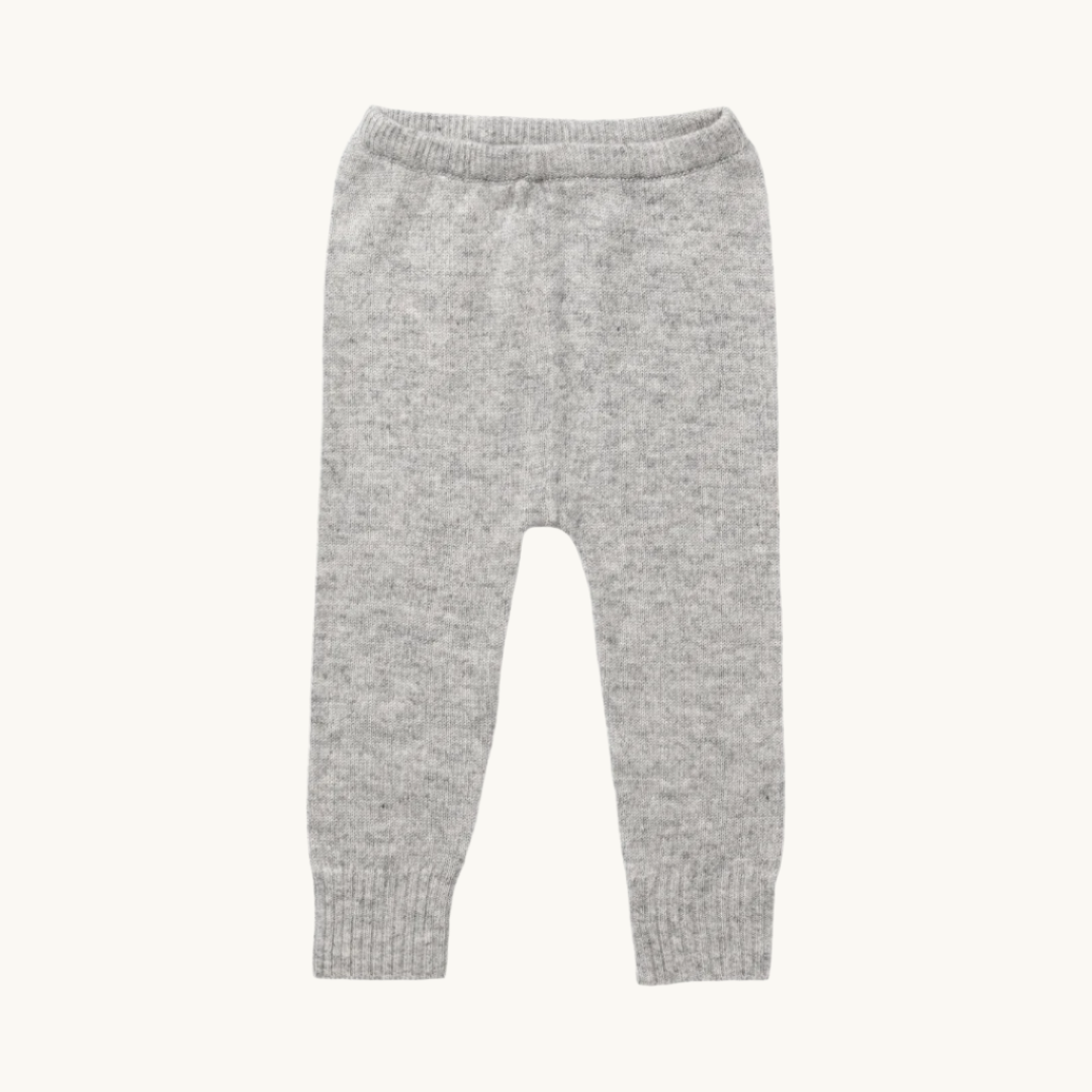 Uma calça, dois estilos. Confeccionada em tecido Interlock duplo lado com 100% algodão orgânico certificado (kbA), em cinza mescla convencional e vermelho tijolo. De um lado, com listras; do outro, com bolinhas, combinada com reforços nos joelhos. O cós largo na altura do umbigo e os punhos nos pés permitem que a calça cresça junto com o bebê. Muito respirável e confortável para usar.