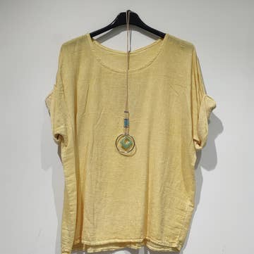 Blusa de linho com decote redondo 659005 100% linho