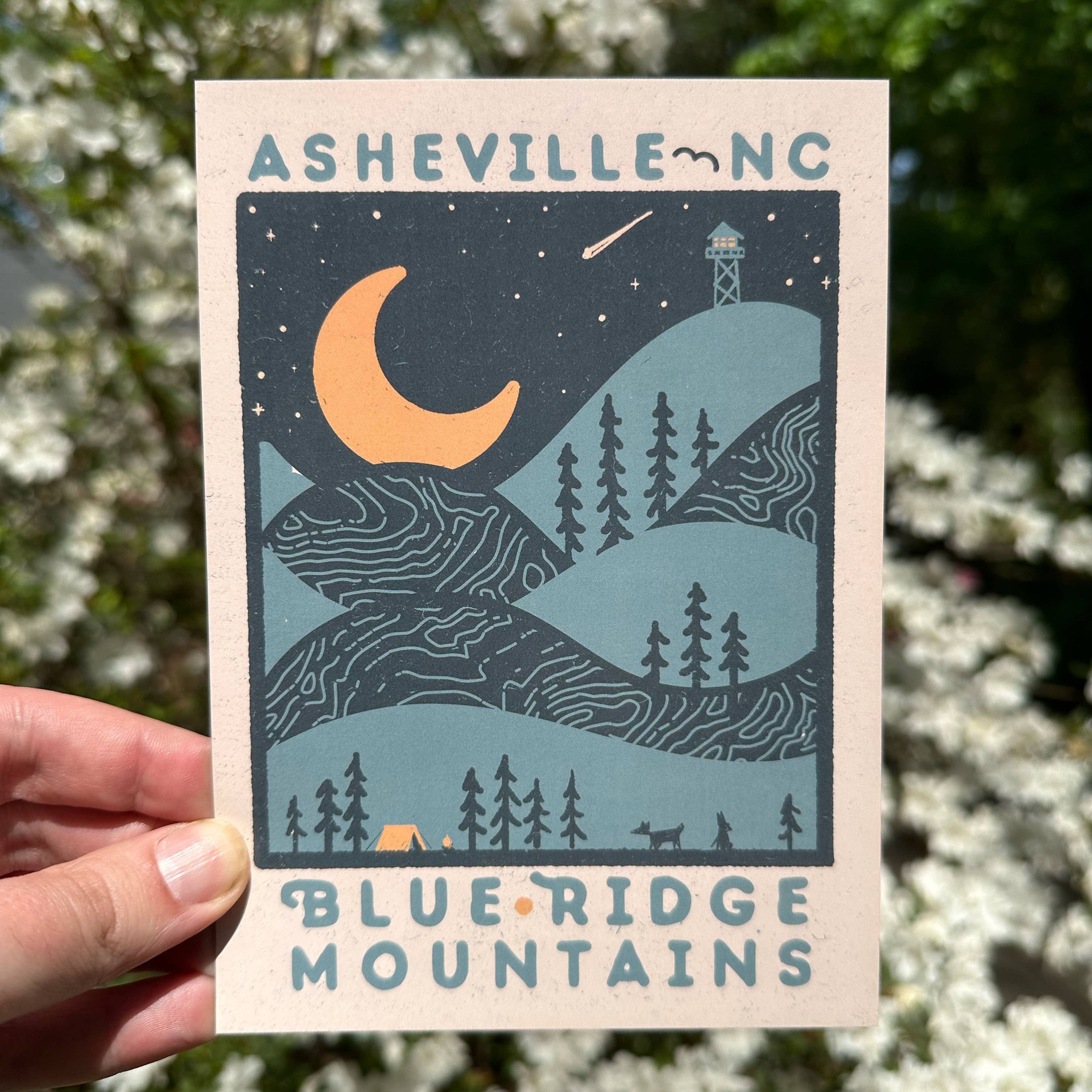 Camiseta fofa de Asheville e um cliente comprou todos os postais.